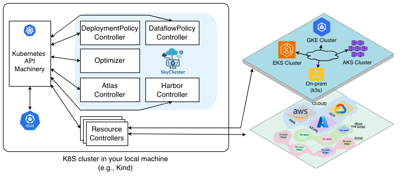 The overall architecture of SkyCluster consists of several key components as shown below: