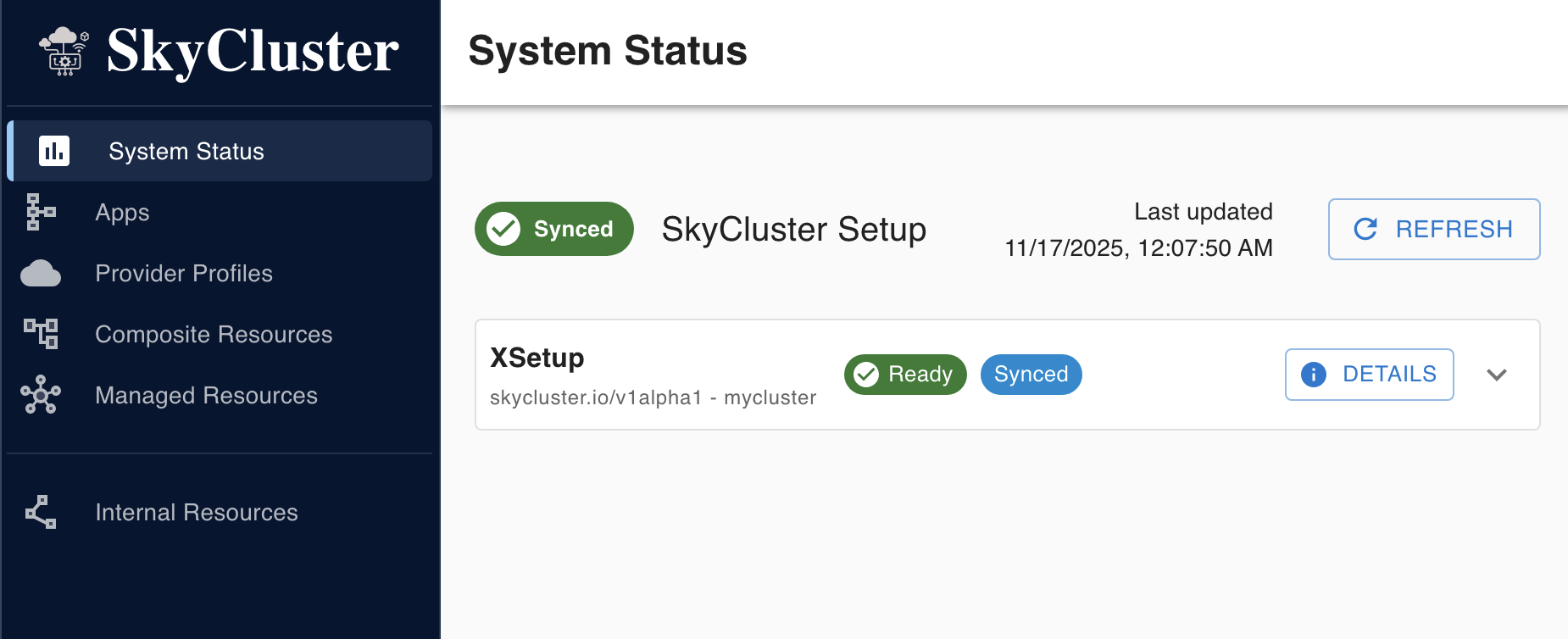 You can also check the status of the SkyCluster components within the dashboard: